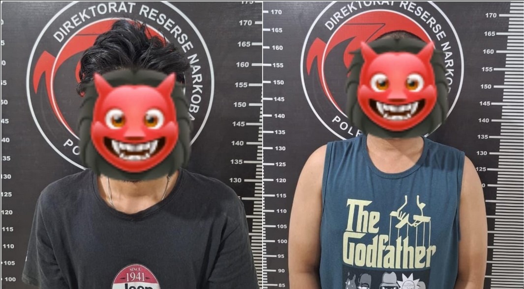 YI (27) (kiri) dan JA (34) (kanan) saat diamankan Satresnarkoba Polres Kukar dalam pengungkapan kasus peredaran narkotika jenis sabu di Desa Sanggulan, Kecamatan Sebulu. (Foto: Humas Polres Kukar)