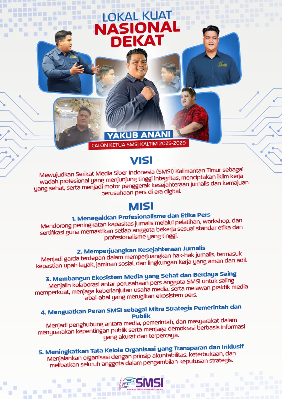 “Untuk visi, saya ingin angkat SMSI sebagai wadah profesional yang menjunjung tinggi integritas, menciptakan iklim kerja yang sehat, serta menjadi motor penggerak kesejahteraan jurnalis dan kemajuan perusahaan pers di era digital,” beber Yakub saat diwawancarai media.